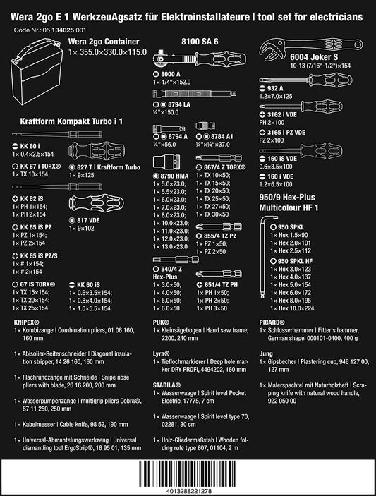 Juego de herramientas para electricistas 73 piezas Wera 2go E1 ref.134025