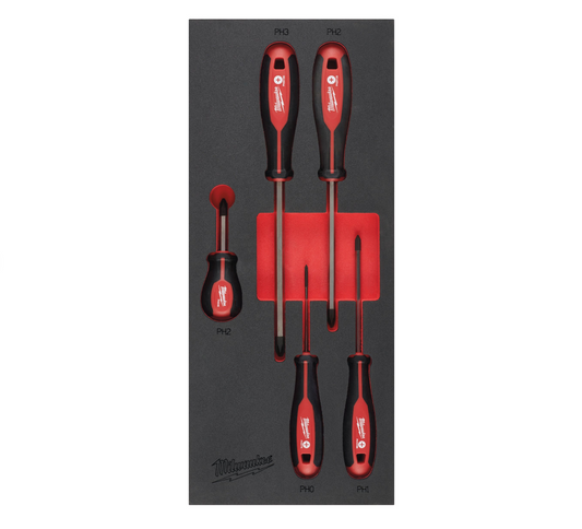 Espuma con 5 destornilladores PH Milwaukee