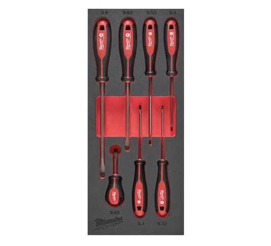Espuma con 7 Destornilladores Planos Milwaukee