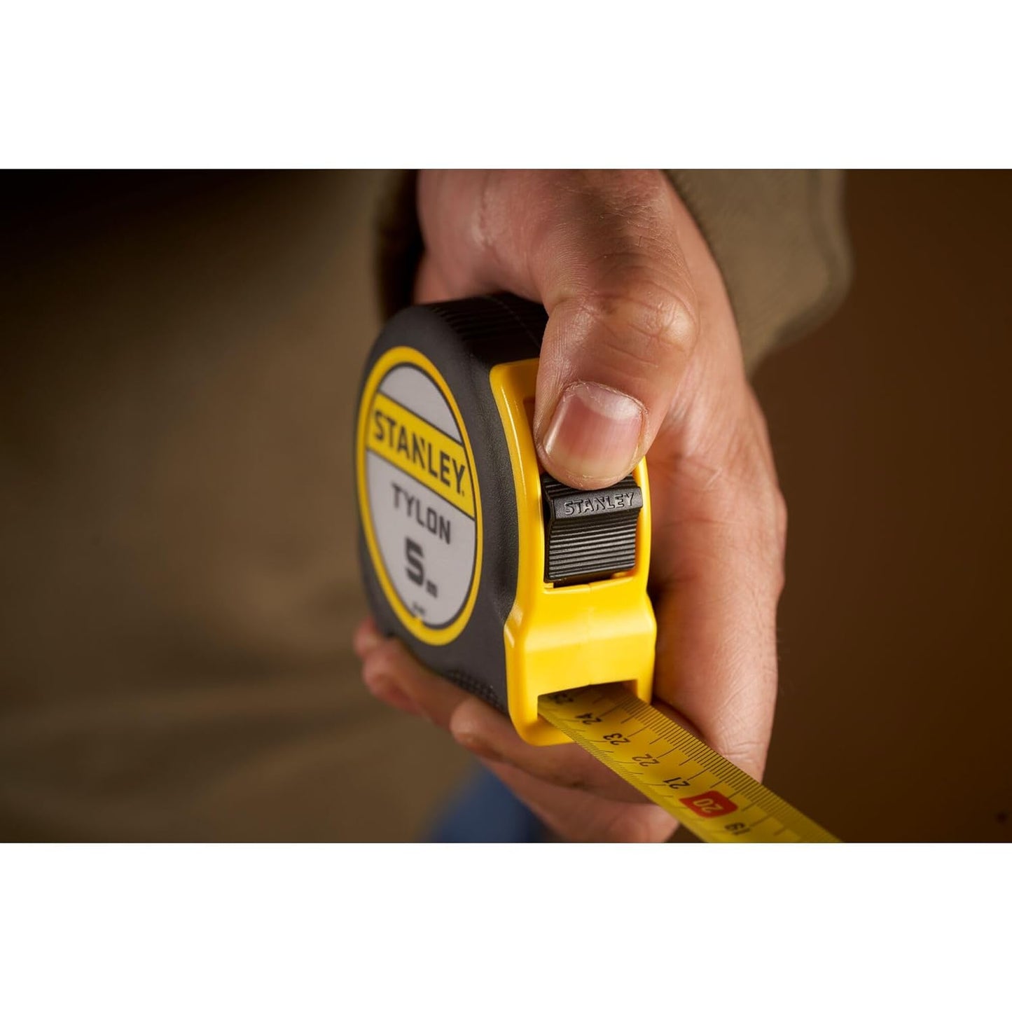 Tylon 5mX19mm tape measure 1-30-697 from Stanley. 5 meter tape measure with ultra-resistant steel tape with Tylon coating that increases the durability of the blade by up to 50%.