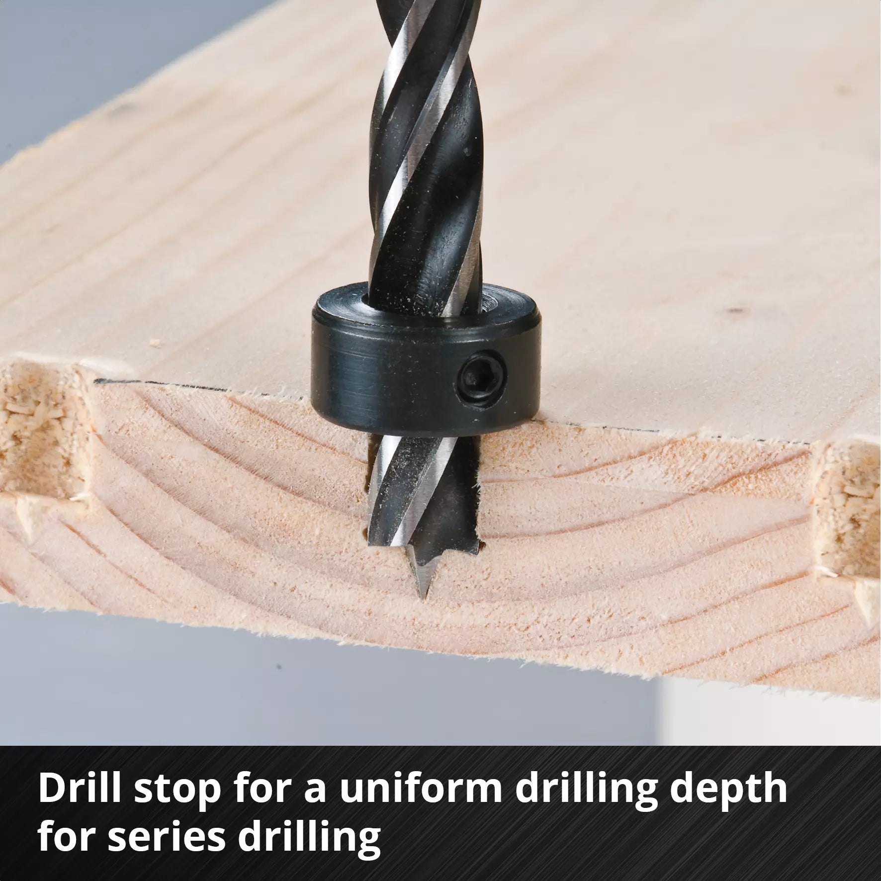 • 4 depth stops for drill bits in sizes: 5 mm, 6 mm, 8 mm, 10 mm.